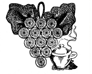 A unique hot plate mat which looks like a bunch of grapes may be hung on the wall as a plaque when not in use on the table.