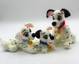 With these 3 patterns you can recreate Perdita, Pongo and one of their puppies, the characters from the popular Disney movie or simply create your own family of Dalmatian dogs.