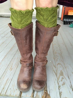 Enjoy these leafy, lush boot-tops with three no-sew flowers! Pattern features written and charted stitch pattern, and 3 optional mix and match flowers. Not interested in boot cuffs? Just keep knitting, and end up with legwarmers.