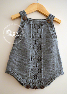 The rompers are knitted in 2 pieces and seamed down the side. The rompers have a delicate pattern running down the front.