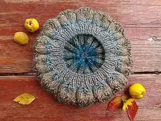 Раппорт начинается на шести петлях, после прибавок в раппорте 12 петель. По окружности берета получается 14 листьев. На более толстых спицах, № 6, например, можно вязать берет или шапочку из 12 раппортов.