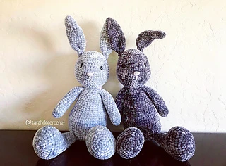 This pattern includes a photo tutorial and a written stitch guide. I do recommend you know basic stitches before tackling this project. Also included are photo tutorials to help reference the written pattern. Smaller version of Mia is approximately 13 inches from top of ears to the bottom of the foot. Larger, velvet Mia is approximately 21 inches from top of ears to the bottom of the foot. Both options are included.