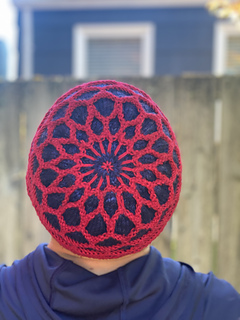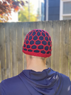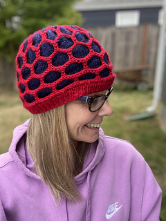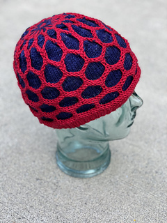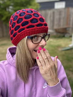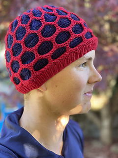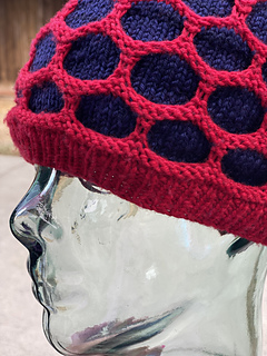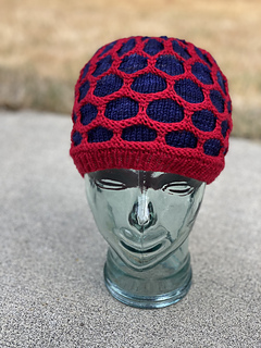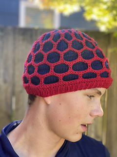 This wonderfully textured beanie features fun circles created with some slipped stitches and garter stitch. There are 3 sizes offered but the 3 sizes fit 6 ages (toddler/child, teen/adult, adult large). The gauge for this beauty is 5.5 stitches per inch.