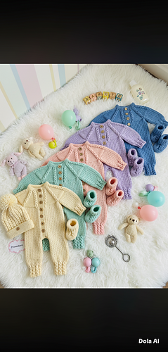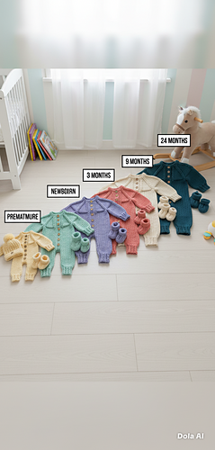 The very popular 3 piece Primrose romper, hat, and booties set has been multisized to offer sizes from a premature baby to 24 months.