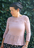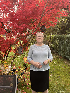 This sweater is worked seamlessly from the top down. At the top of the yoke some short rows are worked to lower the front neckline. The yoke is worked in the round featuring lace and textured stitches. Sleeves and body are separated and worked top down. Optional A Line shaping makes a flattering fit.