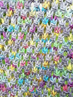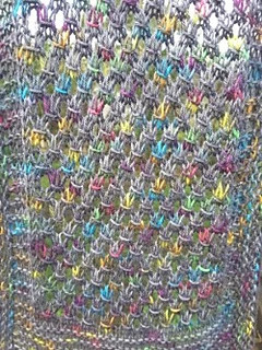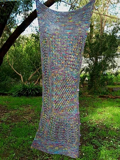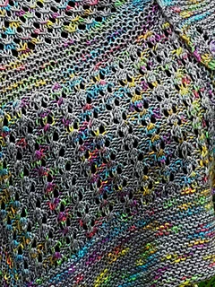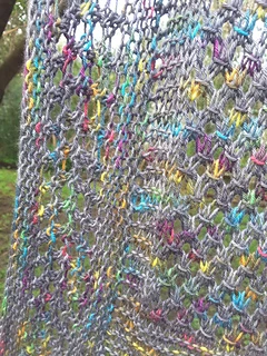 Sample is knitted using 100 grams of Silky Merino from www.strengthhonourwares.etsy.com. Colourway is Nebular Bow.