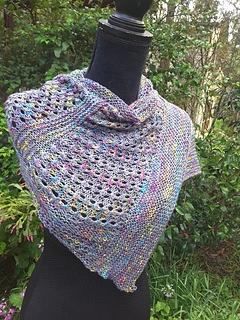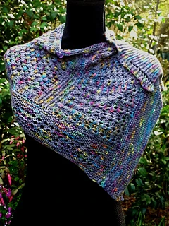 Easy lace and eyelet patterns give a beautiful drape to a very versatile wrap that is quick knit due to the use of 5.50mm needles