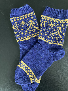 Die Socken werden vom Bündchen zur Spitze gestrickt. Die Anleitung richtet sich an erfahrene Sockenstrickerinnen. Bündchen, Ferse und Spitze werden nicht erklärt. Der Colorwork-Abschnitt enthält einige lange Flotten. Die Technik des Einwebens sollte bekannt sein.