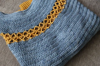 This pullover uses 2 colors that contrast well off of each other but can be made in 1 color.