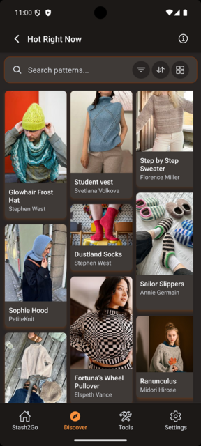 • Search for patterns, projects, yarn, and shops