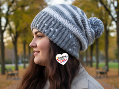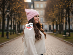 Messy Bun Cat Hat with heart graph - pink pussycat