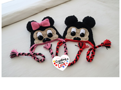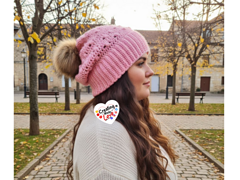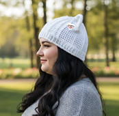 - Messy Bun Cat Hat with heart graph - pink pussycat
