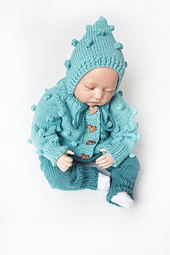 - Knitted pants, sweater and hat helmet