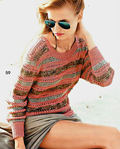 - # 44 Pull motif ajouré avec bandes de couleurs
