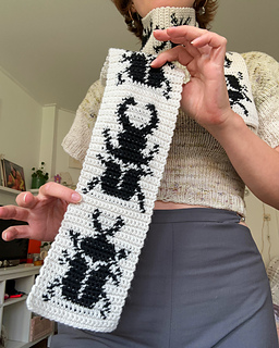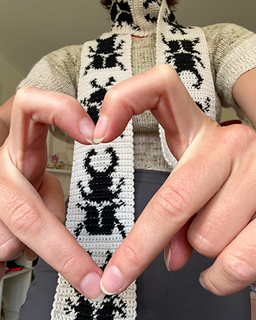 This PDF pattern will help you crochet your own Beetle scarf. You’ll be able to download the pattern immediately after purchasing. It includes an explanation on how to crochet the Beetle scarf, including detailed written instructions, tutorials and guides, and a pixel graph.