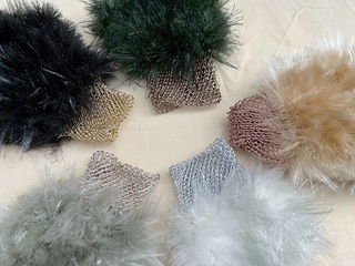 どちらの糸も、ベーシックなストレートヤーンに比べるとやや編みにくいかもしれませんが、手編みに思えないくらいリッチな仕上がりになります。