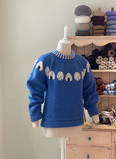 This top-down design highlights a playful motif combined with refined structural details. Moving seamlessly between knitting in the round and flat knitting the construction creates dimensional texture and depth throughout the fabric.