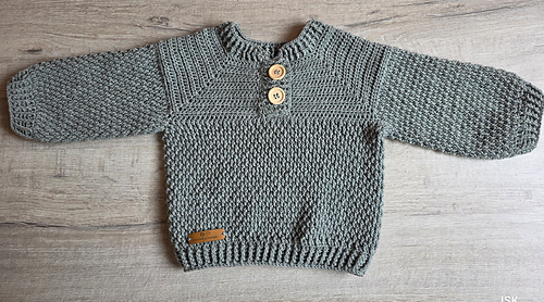 This sweater is crocheted top-down with Drops Baby Merino wool.