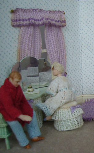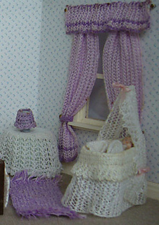 This pattern includes: 2 bedspreads for both single and double beds, hot water bottle cover, cushions, table cloth, lampshade, rug, child’s nightdress, doll, curtains, dressing table, cheval set, stool and mother’s negligee, lacy cradle, new born baby’s nightdress and pants, father’s pyjama trousers and dressing gown.