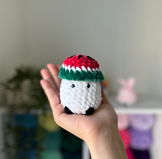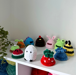 This digital PDF pattern guides you step-by-step (with pictures!) The egg is no-sew and the masks and hats are mostly low sew