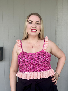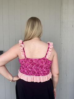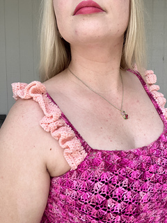 -Feel free to go down a hook size for the straps. They tend to increase quite a bit with the ruffle.