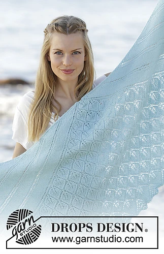 Knitted shawl with leaves and lace pattern in DROPS Alpaca, worked top down.