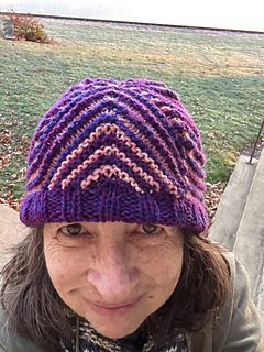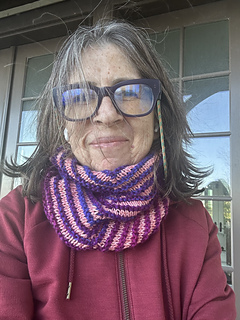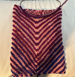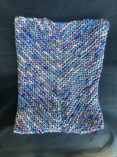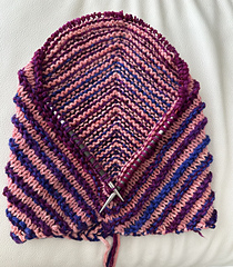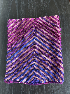 The unusual construction is modular, and this makes for a fun and interesting knit. The cowl on the diagonal stays upright and does not flatten or collapse.