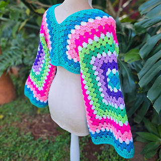 This Modern Two Granny Square Cropped Sweater pattern transforms two oversized granny squares into a stylish cropped pullover with a clean, contemporary silhouette. Designed for confident beginners, this easy crochet garment uses simple construction and minimal shaping to create a bold, wearable statement piece.