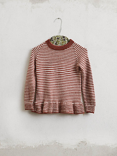 Striped raglan sweater w/flounce, knitted in Alpakka Silke