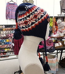 The hat is started by making two earflaps which begin with i-cord (see photo). The earflaps are joined by casting on additional sts between the earflaps. The hat continues with ribbing and then stranded knitting. The earflap ribbing should flow right into the hat ribbing. See earflap photo.