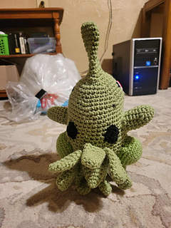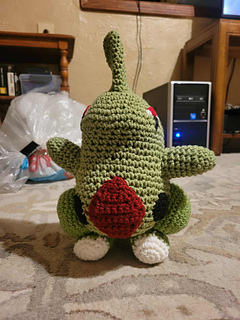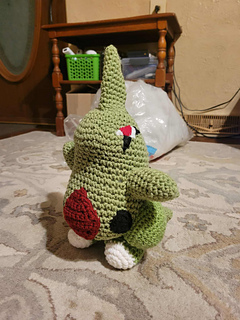 9 Page PDF with full color instructions and photos on how to make your very own Larvitar amigurumi! If following the US Crochet terms/English instructions, the finished plush should come out approximately 12 inches tall.