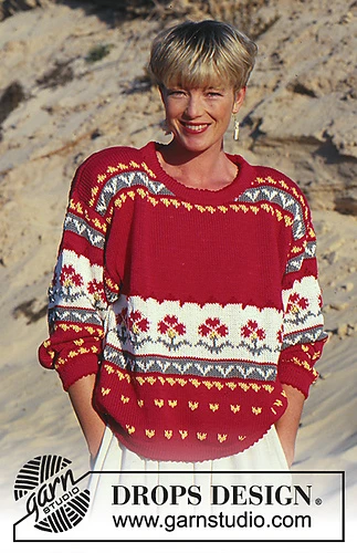 DROPS jumper with flower borders in “Muskat ”.