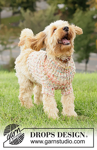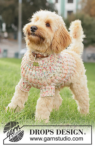 Knitted jumper for dog in DROPS Fiesta. Piece is worked from the neck to the tail with rib.