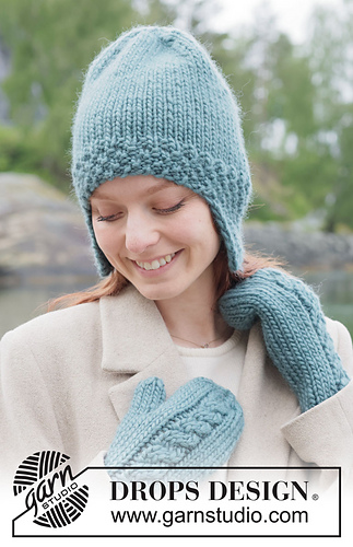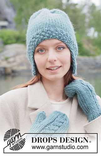 Knitted hat with earflaps in DROPS Snow. The piece is worked bottom up with double moss stitch and stocking stitch.