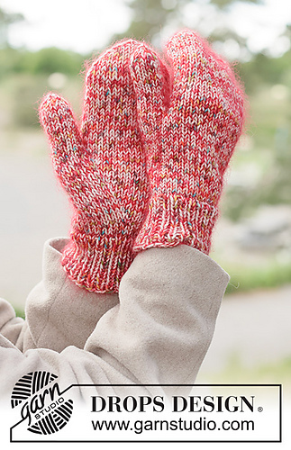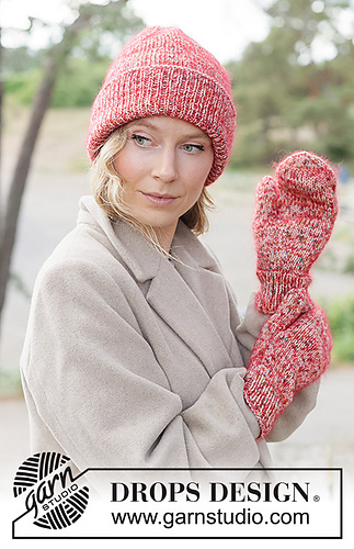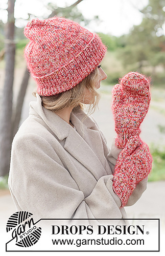 Knitted hat and mittens in DROPS Fiesta and DROPS Kid-Silk.
