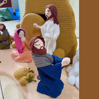 Yarn colors needed: skin color, white, brown, dark brown, black, sand color, grey, gold brown, light grey, light blue, magenta, dark salmon, dark olive green, navy blue, dark orange