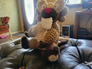 12 Page PDF with full color instructions and photos on how to make your very own Bibarel amigurumi! If following the US Crochet terms/English Instructions, the finished plush should be about 12 inches tall.