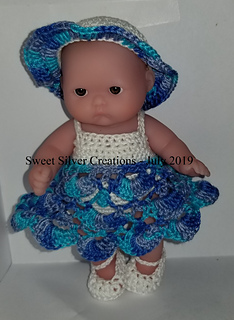 Instructions are for the dress, panties, bolero vest, hat and shoes