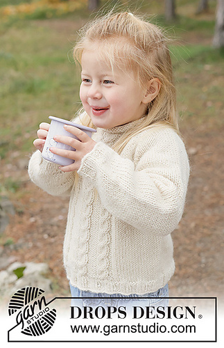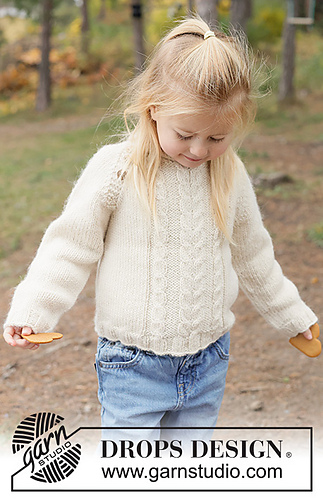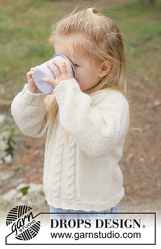 Knitted jumper for children in 2 strands DROPS Alpaca. The piece is worked top down with raglan, cables and rolled neck. Sizes 2 - 14 years.