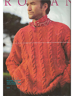 Rowan 561, Moss and Cable Sweater in Magpie Tweed and Magpie Aran
