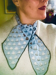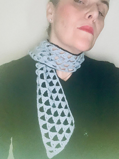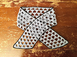 30 grams of fingering yarn (dive into your stash, maybe some sock yarn is left) for an elegant, classy scarflette.