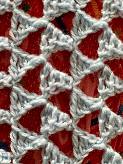 “5x4” si chiama così perché e composta di triangolini fatti ognuno con 5 catenelle su cui si lavorano i 4 punti base dell’uncinetto.