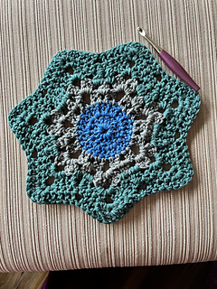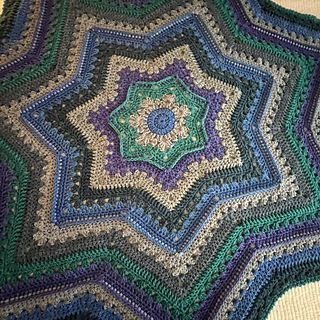 This fun and easy pattern is adaptable, perfect for crocheters of all levels of experience. It is easy enough for new crocheters and interesting and addictive for the more seasoned. It is just like the viral 6-Day Star Blanket, but has an adaptation of Round 6 to create a textured ridge. This blanket can be made in virtually any yarn, can be striped any number of ways, and you can make a blanket of almost any size you like. The border is a very simple reverse single crochet.