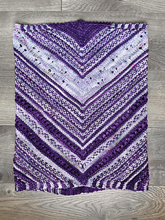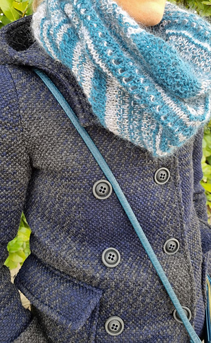 Construction: The seamless cowl begins like a triangular shawl with a garter tab cast on. It is knit flat, then joined in the round and worked even, and finished flat. The result is a seamless tube of knitting!