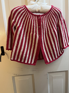 The jacket is worked in garter stitch in one piece starting on left front, knit towards the left sleeve, the back, the right sleeve and finishing with right front.