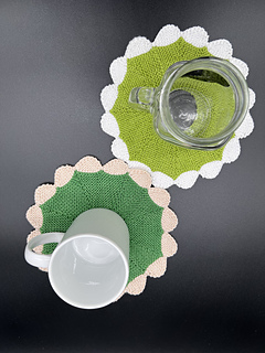 • 50g green yarn (one skein of 50g will allow you to knit 2 to 3 coasters)