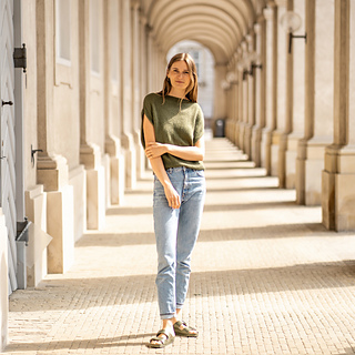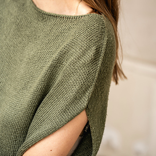 Ample tee is knit top-down and is designed to be worn wide and cropped.