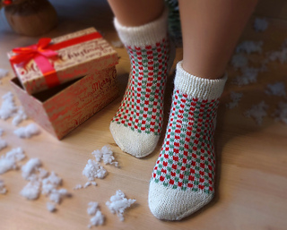 Skills required: basic knitting, decreasing, basic sock skills, short rows, German short row, stranded knitting.