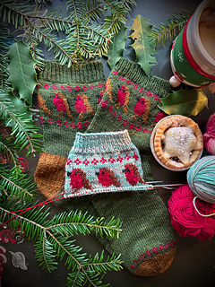 Two whimsical Christmas/winter holiday inspired colourwork sock patterns, to add a bit of joy and help put you in a festive mood. This sock set is a must have for all yuletide and holiday season lovers.