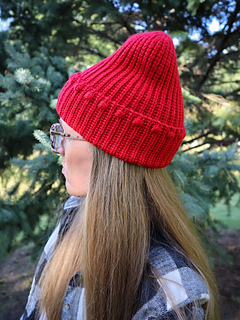 This crochet hat pattern features a 1 x 1 ribbing style, mirrored short rows, and a playful decorative bobble stitch detail along the fold-over brim.